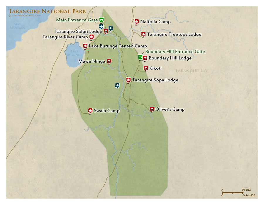 Tarangire National Park is part of Tanzania’s northern safari circuit that also includes Lake Manyara, Ngorongoro, and the Serengeti. Tanzania’s sixth largest park, Tarangire has excellent wildlife densities and great accommodation options.